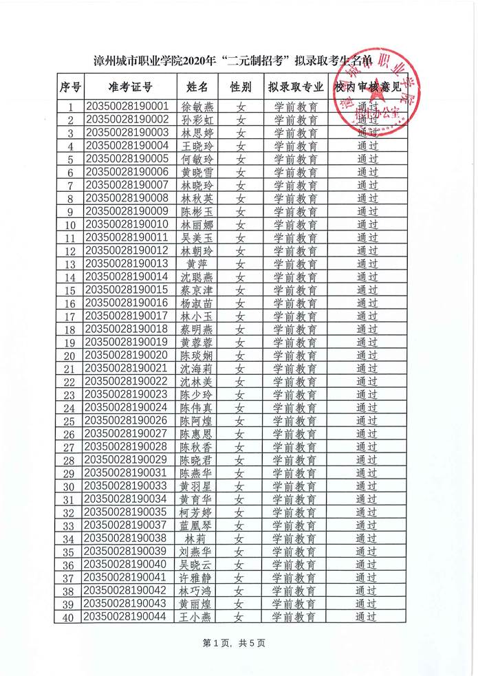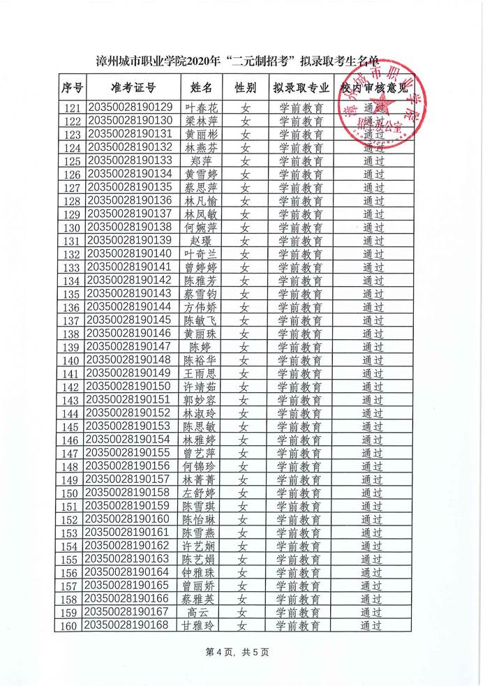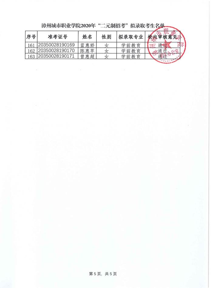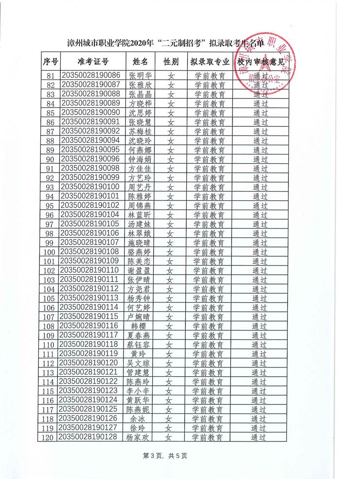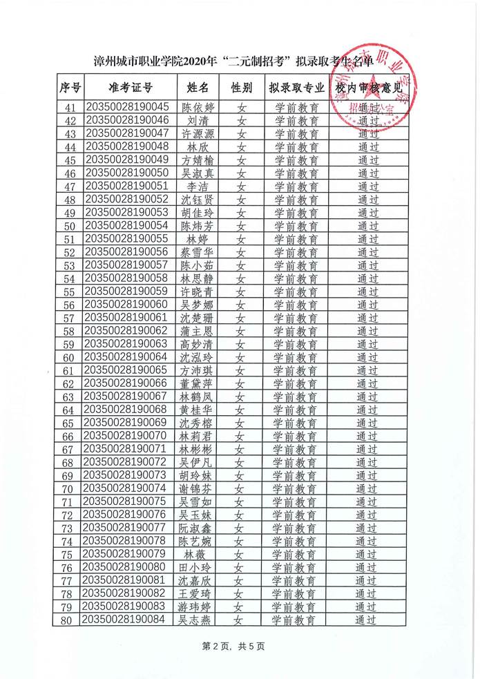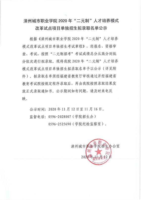 2020年“二元制”人才培养模式改革试点项目单独招生拟录取名单公示